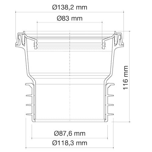 concentric wc pan outlet Ø90-110mm with fins for press install.