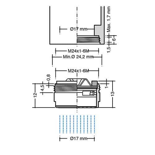• rosca aireador: Macho 24x1. Para grifo con rosca hembra.