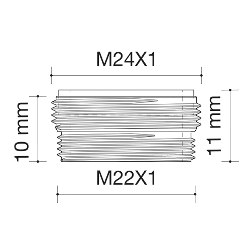 adaptador M22x1-M24x1 para adaptar cualquier aireador hembra M22x1 en un grifo hembra M24x1, con junta EPDM, fabricado en latón.