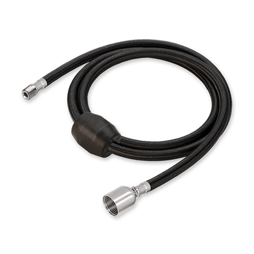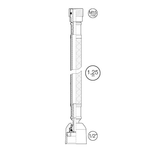 manguera flexible para grifo de cocina con mango extraíble. 1,25 m. Conexión a grifo: M15/100. Conexión a mango: H1/2" articulada. Fabricado con trenzado de nylon reforzado.