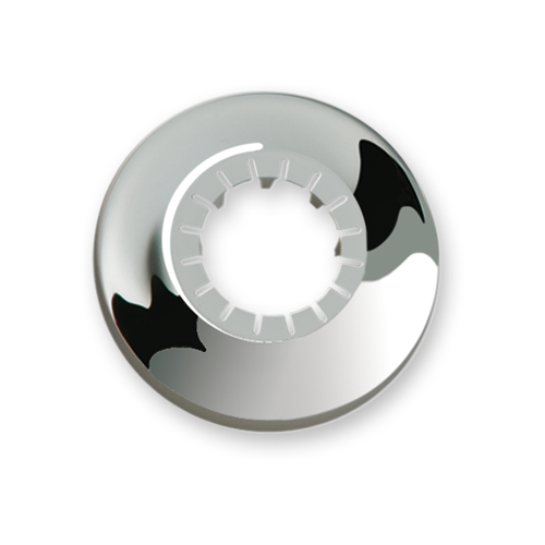 florón embellecedor para tubo o conector extensible o rígido, Ø32-40mm interior y Ø85mm exterior, color cromo.