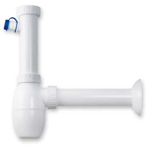 sifón bote fregadera drena con toma para lavavajillas, fabricado en termoplástico.