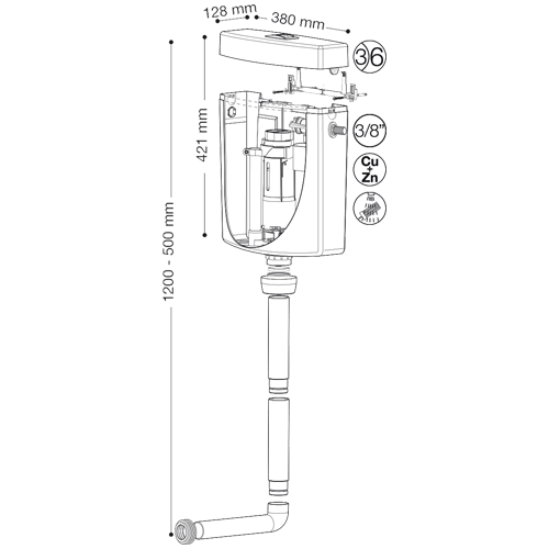 - conjunto completo: incluye pulsador, mecanismo descarga, grifo llenado lateral, colgador, tornillos y tacos fijación, tubo a WC y junta a WC.