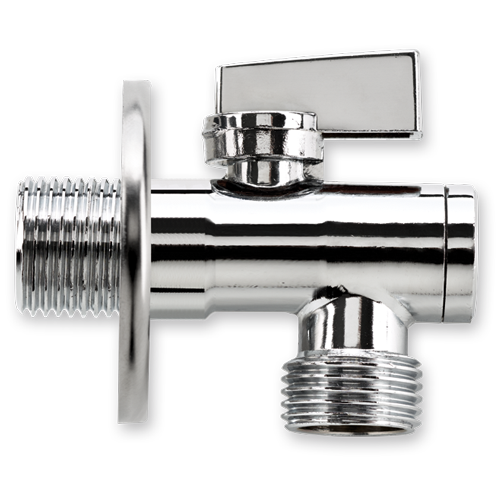 llave de escuadra M1/2"-M1/2" con filtro para fácil mantenimiento en instalaciones con mucha cal, para ducha-bidé, fabricado en latón cromado.
