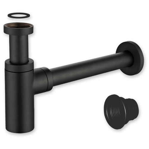 sifón bote para lavabo avant, fabricado en latón con acabado negro mate. Incluye junta labiada para insertar a presión.