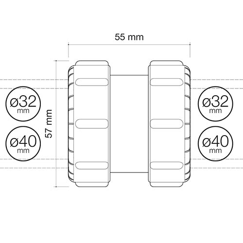 • para conectar dos tubos de Ø32mm ó Ø40mm. (habitual lavabo, bidé, fregadera, urinario, bañera, ducha, etc.).