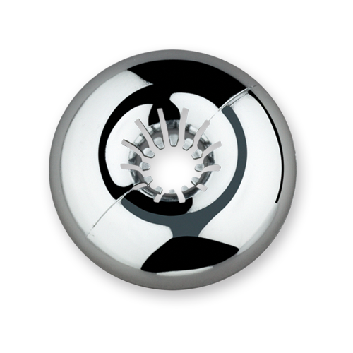 florón embellecedor cromado para tapar imperfecciones entre tubo de calefacción y pared, fabricado en termoplast.