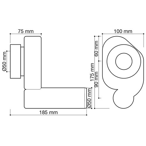 sifón horizontal para urinario con salida horizontal