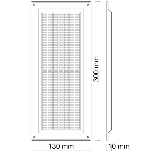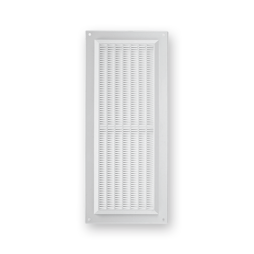 rejilla rectangular 130x300mm de superficie con red fija para interior, especial para ventilaciones tipo shunt, fabricada en termoplástico color blanco.