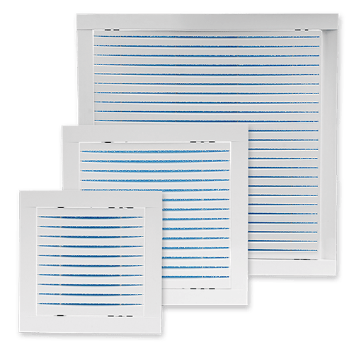 rejilla-trampilla cuadrada 165x165 mm con filtro contra polvo o insectos, fabricado en termoplástico color blanco.