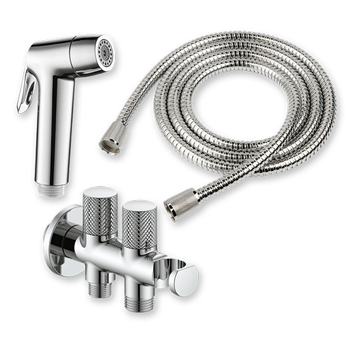 ensemble douchette bidet avec valvule double totem strongflex chromé