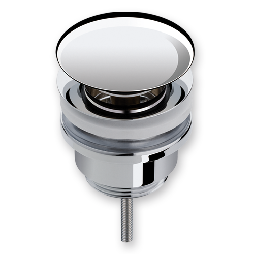 válvula clic clac UNIVERSAL con tornillo para lavabo con o sin rebosadero, fabricada en latón cromado, envasado en blister.