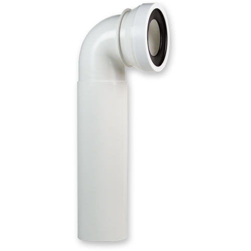 manguito curvo macho Ø100mm largo para conexión wc a red sanitaria, con anillo para fijar a bastidor.