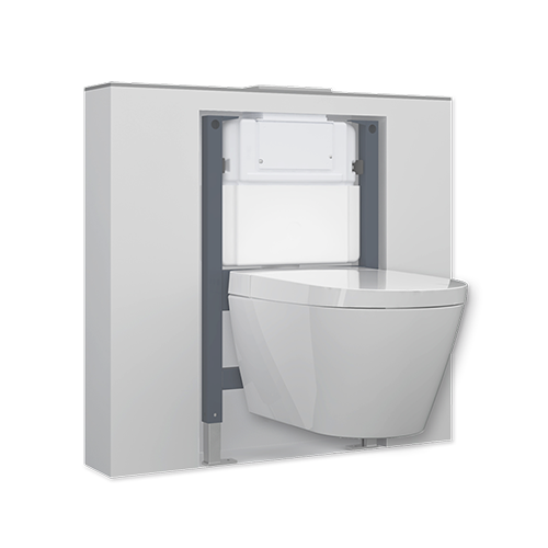 set réservoir encastré avec cadre et plaque frontale/superieur drena wc suspendu, pour installation sous fenêtre ou baisse hauteur, double déclenchement 3/6 l. pour économiser de l'eau, avec plaque déclenchement.