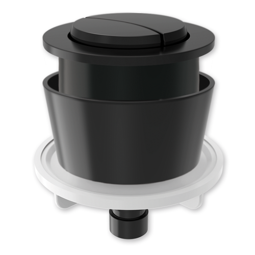 pulsador doble de recambio para mecanismo de descarga en cisterna cerámica, doble botón para descarga parcial o completa, con anillo extraíble a presión para colocarlo empotrado o de superficie en la tapa o lateral de la cisterna, negro mate.